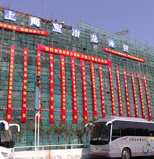 閩南古鎮(zhèn)三期工程進(jìn)度,封頂了賀一下。