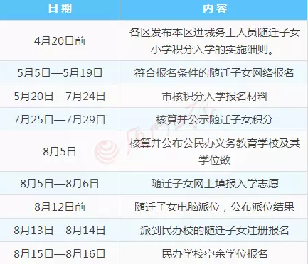 2016入學(xué)積分表與入學(xué)報(bào)名時(shí)間安排出來了
