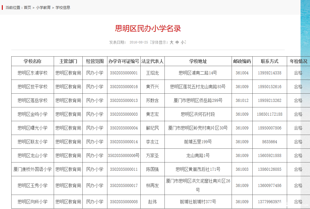 思明區(qū)民辦小學(xué)位置大致分布圖