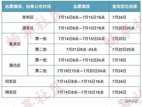 志愿填報有且只有14、15兩天時間(集美區(qū)、海滄區(qū)分二批),逾期未在網(wǎng)上進行志愿填報的,視為自動放棄參加積分入學(xué)電腦派位資格。