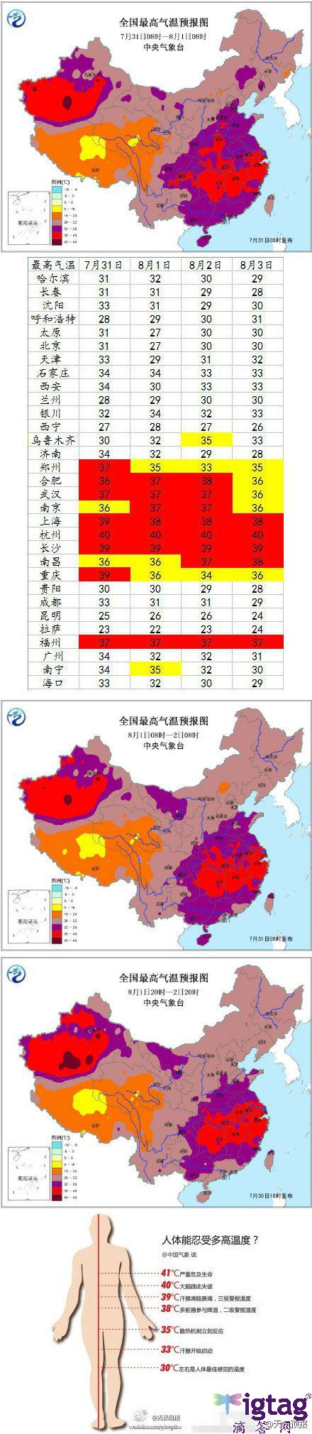 天氣可奇葩了,在馬路上可以直接烤魚、煎蛋已經(jīng)不是奇聞,據(jù)目前中國(guó)氣象局發(fā)布的全國(guó)最高氣溫預(yù)報(bào)圖來(lái)看,在前日就已經(jīng)有近43個(gè)市縣的最高氣溫超過(guò)了40°C,主要覆蓋面積在江南、江淮等19個(gè)省市區(qū),接近全國(guó)三分之一的土地上進(jìn)入了燒烤模式。