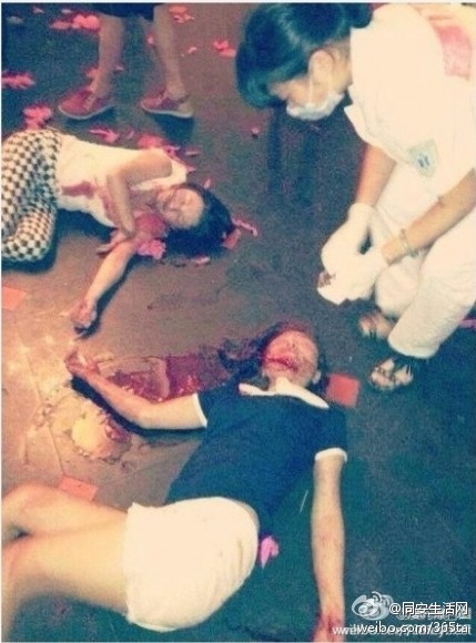 【嚇尿了!廈門七夕慘案】】@Ethan__xX:迷漫著浪漫氣息的七夕情人節(jié)當(dāng)天,發(fā)生在廈門名士至尊演藝吧的慘案,值得我們反思,女人之間的斗爭竟如此的可怕!好危險!!請?zhí)嵝焉磉叺呐笥? PS: 是真的么?都沒看到新聞報道,求知情者爆料!