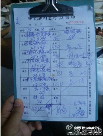 鼓浪嶼餐館現(xiàn)天價菜單