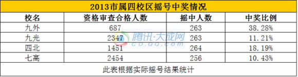 三、2013、2014年成都市屬四校資格審查結(jié)果及搖號中獎(jiǎng)比例
