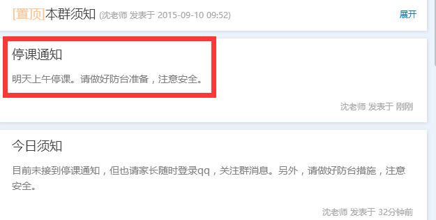 二、各校要及時(shí)將停課決定通知全體學(xué)生,并以電話、短信、微信、網(wǎng)絡(luò)等形式告知家長,加強(qiáng)防臺(tái)宣傳,確保停課消息傳達(dá)到每位師生及每位家長。