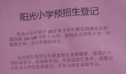 陽光小學(xué)因為擴大辦學(xué),招收小學(xué)一年級新生。