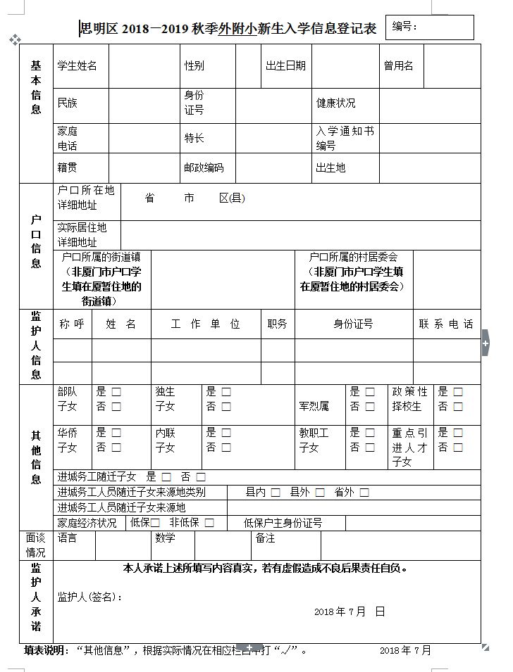 2018廈門(mén)外國(guó)語(yǔ)學(xué)校附屬小學(xué)一年級(jí)招生通告