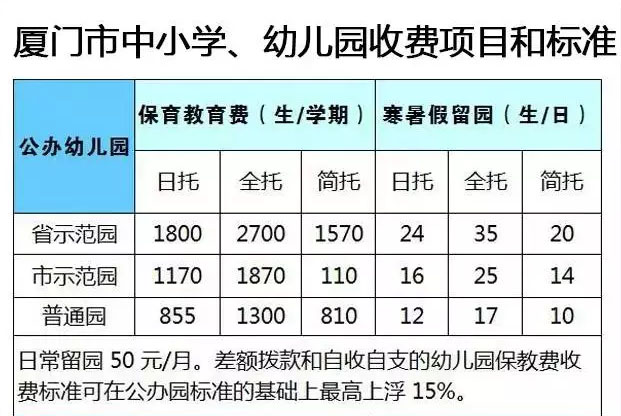廈門小學(xué)幼兒園收費(fèi)項(xiàng)目和標(biāo)準(zhǔn)