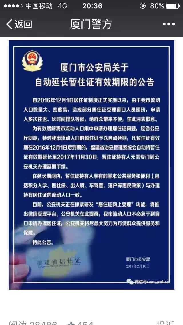 廈門居住證網(wǎng)上受理微信號(hào)多少